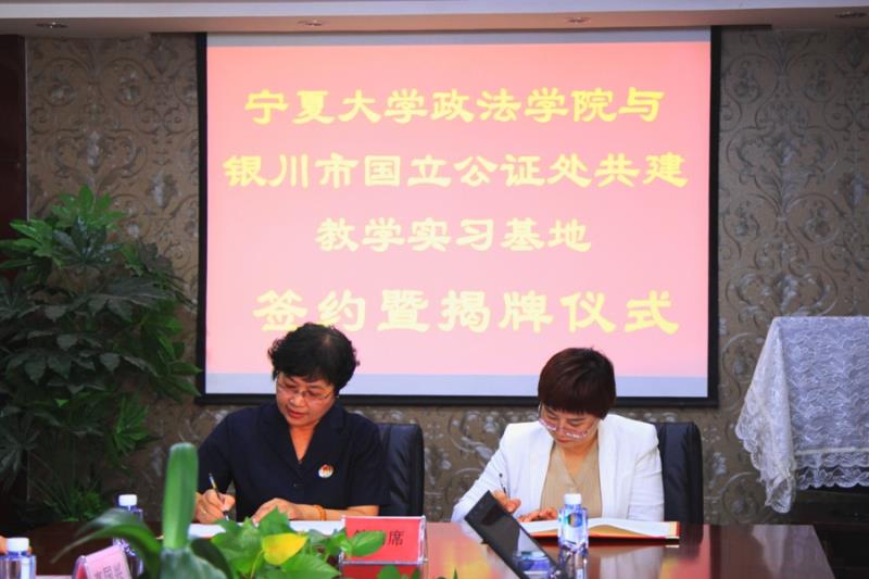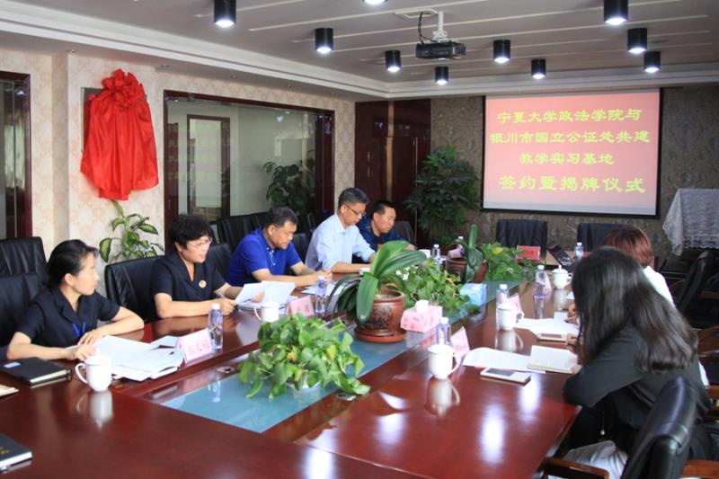 与银川市国立公证处共建教学实习基地签约暨揭牌仪式在银川市国立公证处举行。自治区司法厅律师公证处鹿守岩调研员、银川市司法局李卒副局长、银川市国立公证处于洧主任、银川市司法局公证律师管理科高国兴科长、政黄瓜视频