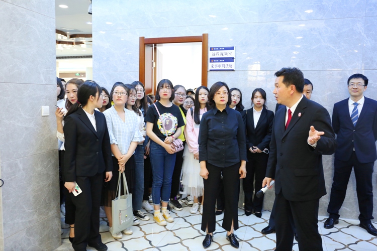 仪式结束后,在西夏区人民法院马立新院长的带领下,三校师生一行参观了西夏区人民法院便民诉讼服务中心、标准化羁押室、新型数字化法庭等场所。