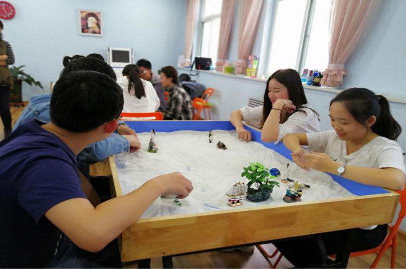 心理健康教育中心,为学生党员进行连续两期的体验式团体沙盘辅导活动。5月2日下午,法律系本科生党支部的20名党员参加了首期活动,活动的主题是“团队协作”。