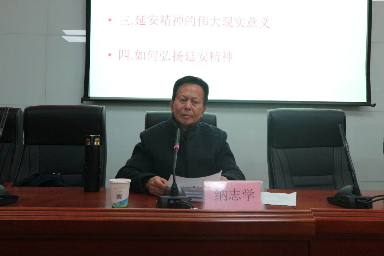 纳志学结合具体事例从延安精神及其内涵、延安精神是怎样形成的、延安精神的伟大现实意义和如何弘扬延安精神四个方面为同学们作了详细讲解。他就新时代高校应如何开展延安精神落实活动提出了三点方案:一是实行“牵手”工程,建立健全组织传递;二是利用三个“长效平台”,配合主渠道传递;三是创新活动方式,围绕中心工作传递,此外还要抓好“写、讲、读、唱、展、演”六个方面。希望通过这三类同学们喜闻乐见的活动将延安精神融入大家的生活和学习当中,坚持跟党走,多看多读多理解,加强理论学习,提高思想认识。讲座最后,纳志学对在场同学提出的问题作了耐心细致地解答。