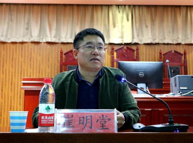 在模拟法庭举办“资助政策解读及励志感恩教育”专题讲座,学院党委副书记崔明堂担任主讲,2019级全体本科新生到场聆听。