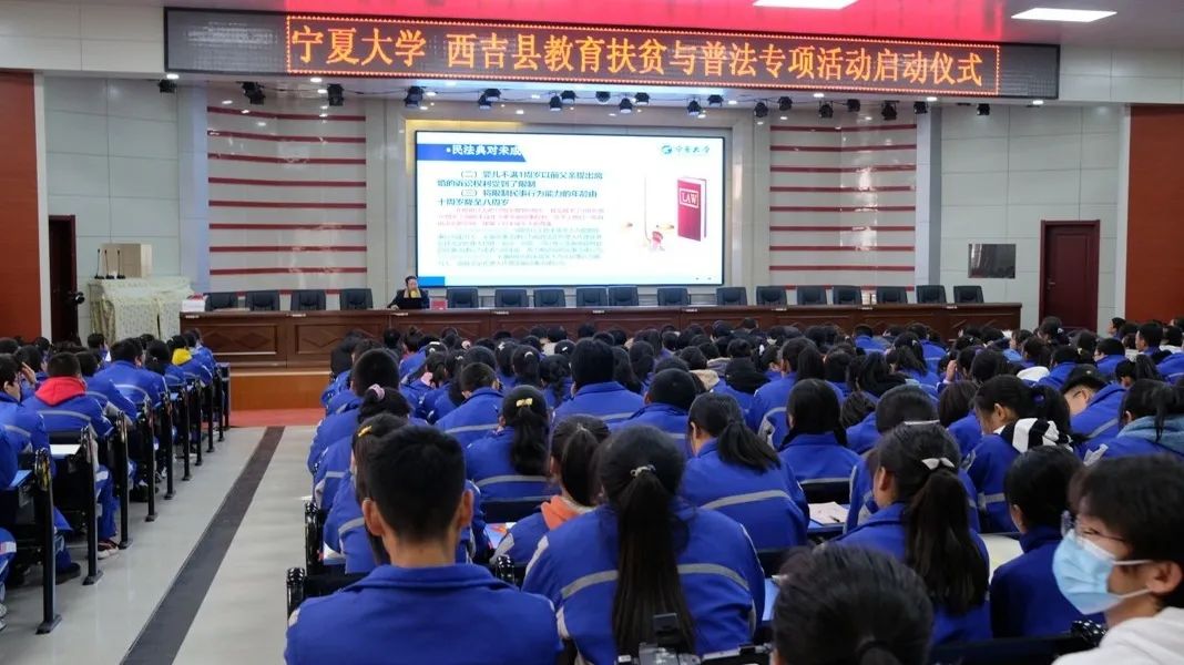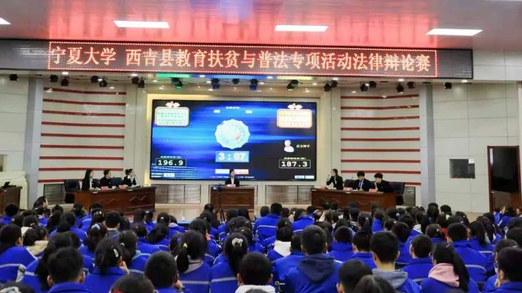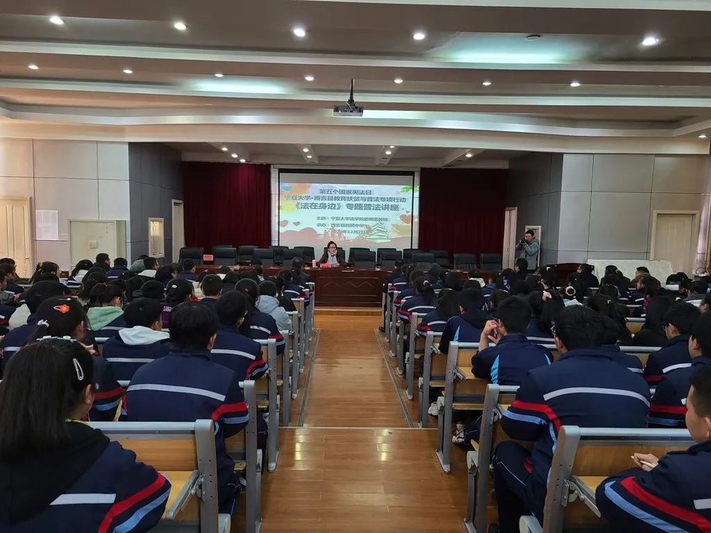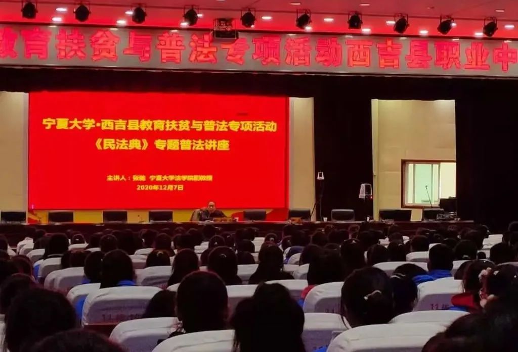 师生宣讲团队分别在西吉中学、西吉职业中学、西吉回民中学同时开展普法宣教进校园活动,以“弘扬宪法精神、推进依法治国”为主题,围绕《民法典大讲堂》、《法在身边》专题普法讲座、大学生法治辩论赛、“以案说法·法治护航”主题班会等丰富多彩的形式展开,共辐射一万三千名西吉师生。