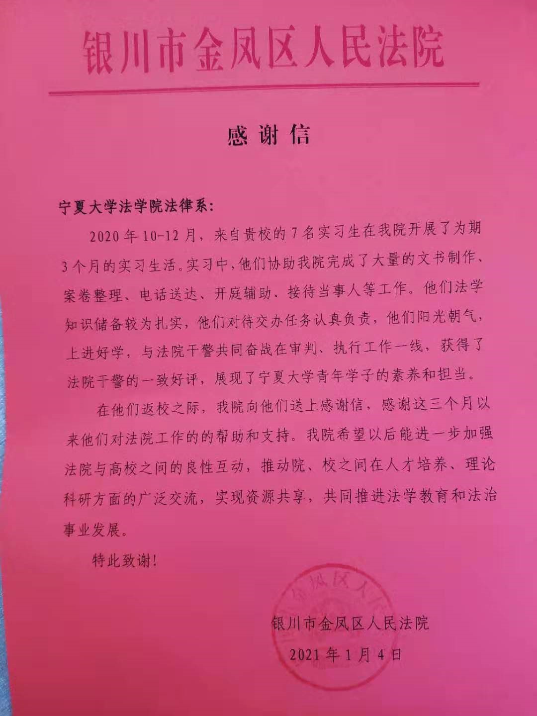 法律系与金凤区人民法院合作的前景非常广阔。