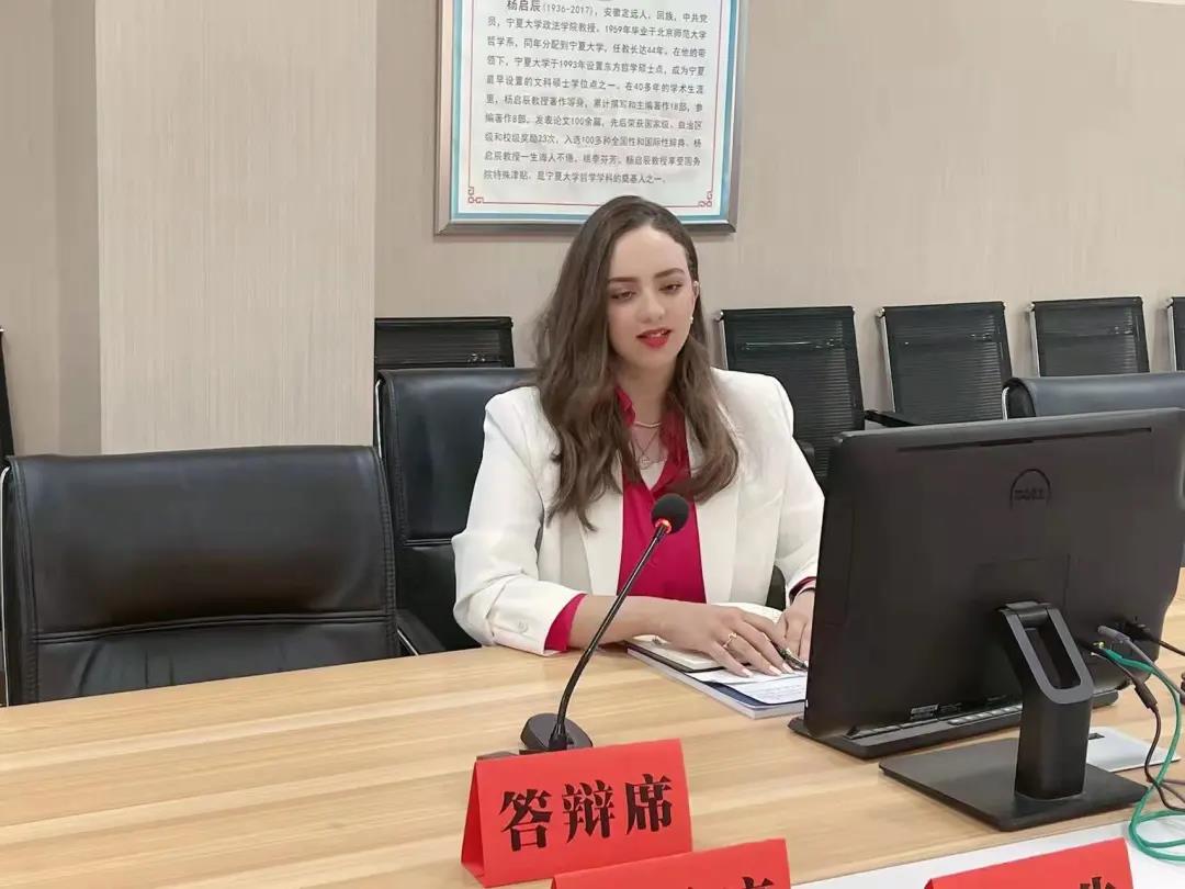 、国际教育学院的老师对她生活和学习的照顾,感谢了中国和埃及家人对她的支持。虽然,埃及时间恰是凌晨两点,其远在埃及的家人也通过线上的方式,旁听了本次答辩。笑笑的博导孙振玉与笑笑父亲通过腾讯会议,以网络形式进行了时空对话,其父亲表达了对中国的感谢之情,让严谨的答辩现场,迅速的有了温度,让在座的每一个人都感到动容。