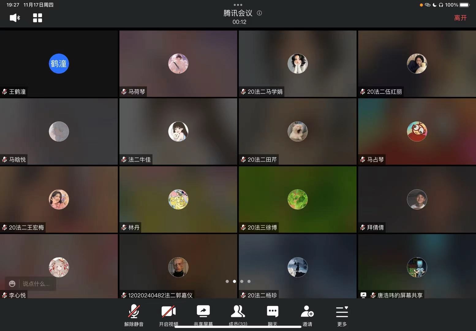 法律系教师何磊召集并进行总结,学生马晗悦担任报告人,唐浩玮、马玉鹏、牛佳、徐博担任点评人,两个班全体同学参加。
