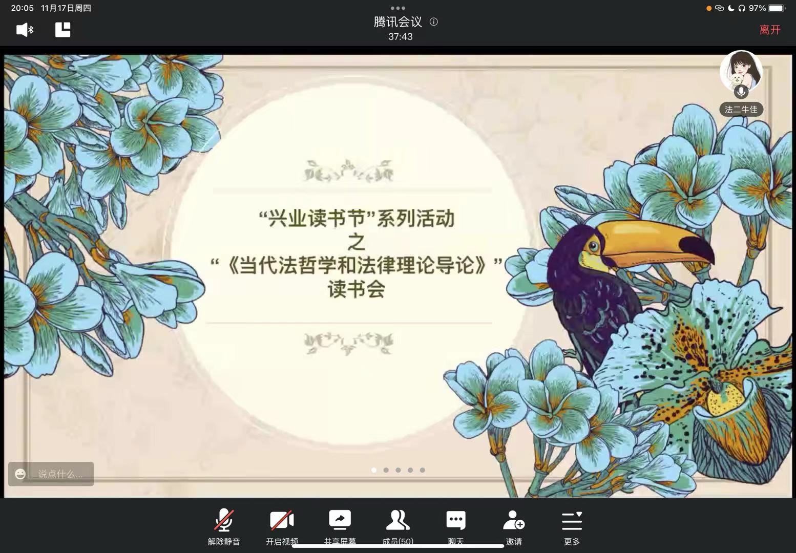 2022年11月17日晚,2020级法学二班、三班本科生举行“兴业读书节”系列活动之《当代法哲学和法律理论导论》读书会。本次读书会由黄瓜视频