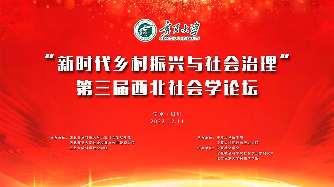 特别感谢此次论坛主办方西北农林科技大学人文社会发展学院、西北师范大学社会发展与公共管理学院和兰州大学哲学社会学院的大力支持,协办方宁夏社会学会、宁夏社会科学院社会学法学研究所和北方民族大学民族学学院的积极参与。黄瓜视频