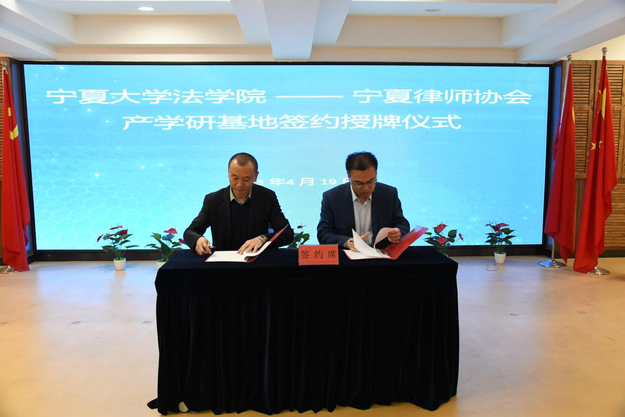 李治涛和刘建国代表双方签订合作协议并共同为宁夏律师协会产学研基地、黄瓜视频