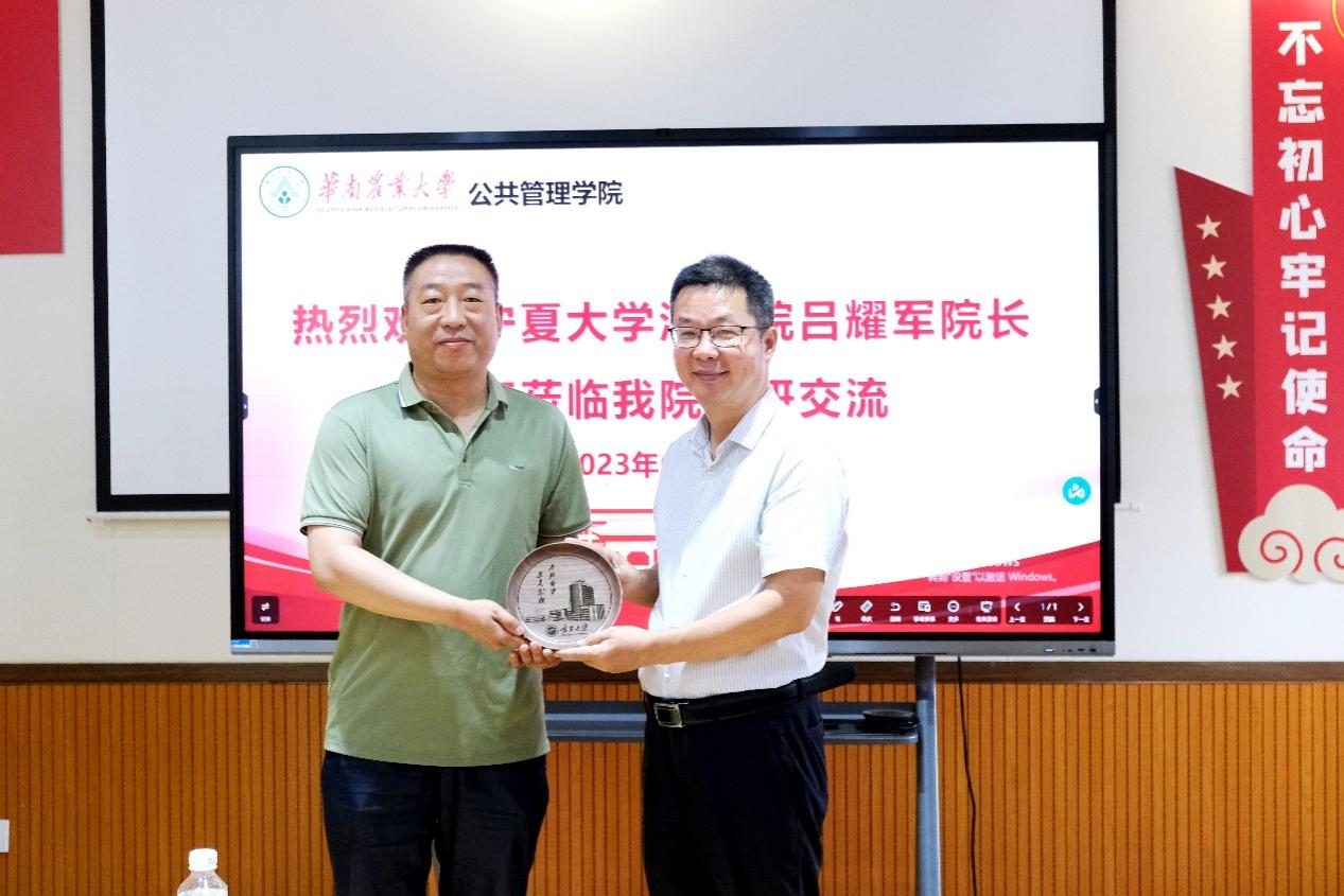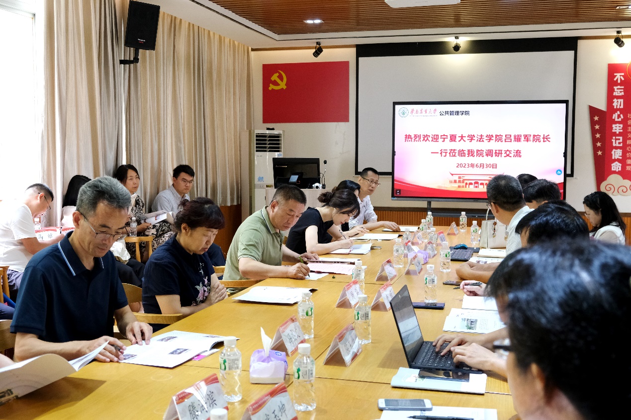 院长吕耀军教授、副院长陆筱璐副教授、行社系系主任雷安琪副教授、MPA学位点负责人杨文林副教授、以及行社系教师安翔教授、冯杰文教授、滕海滨副教授、张红娟副教授、马清虎副教授、韩永静副教授、张琴副教授、周群老师、李俊群老师、张弛博士、贾陈亮博士、马斌博士、姬飞霞博士一行17人,赴华南农业大学公共管理学院开展有关学科建设的调研与交流会。华南农业大学公共管理学院党委书记蔡茂华、副院长杨正喜教授、副院长唐斌教授,以及张玉教授、廖杨教授、陈玉生副教授、武玉坤副教授、区晶莹副教授参加座谈会。