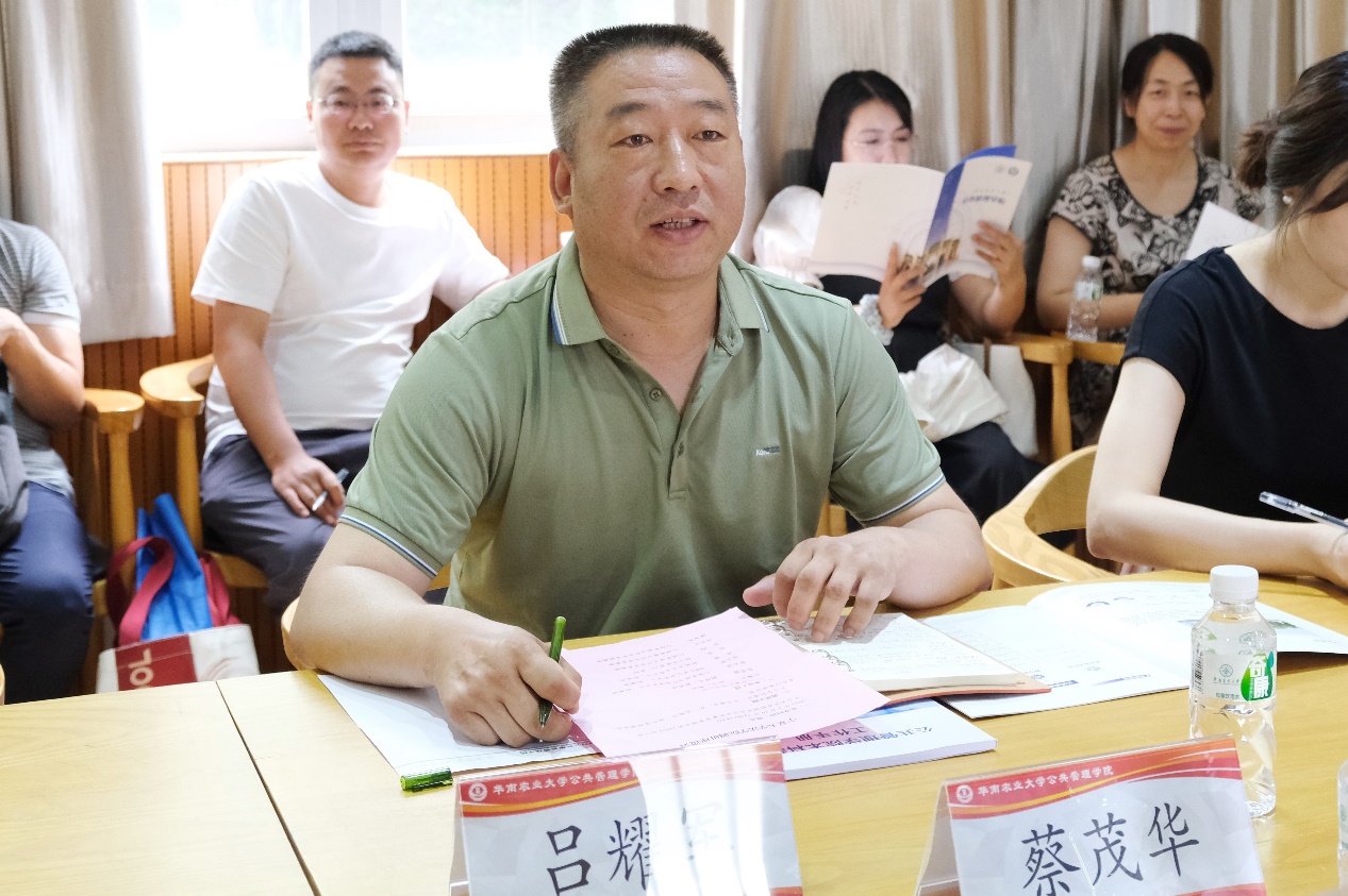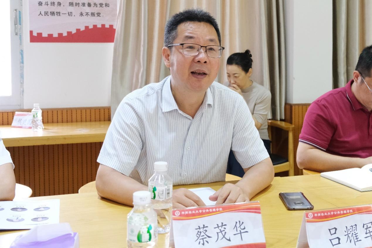 的同行远道而来,能就公共管理学科的建设和发展进行交流,这对双方都有重大意义。蔡茂华还介绍华南农业大学公共管理学院参加座谈会的老师、学院的学科建设等基本情况,他表示学院现有国家级一流本科建设点包括行政管理、社会工作和土地资源管理,这些年在学科建设方面取得了可喜成绩,但也面临一些困惑。