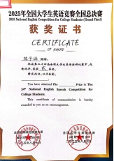 梁一鸣、陈子涵同学在第二十四届全国大学生英语竞赛全国总决赛中喜获佳绩