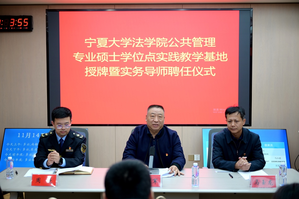 吕耀军在致辞中表示,与同心县应急管理局的合作是学院推进“产教融合、校地合作”高层次应用型人才培养工作的重要一步,应急管理是现代公共治理的核心能力之一,希望通过共建基地,将学院的理论研究优势与地方的实战经验优势相结合,共同探索应急管理人才培养的新路径,为提升区域应急管理现代化水平贡献“宁大智慧”。