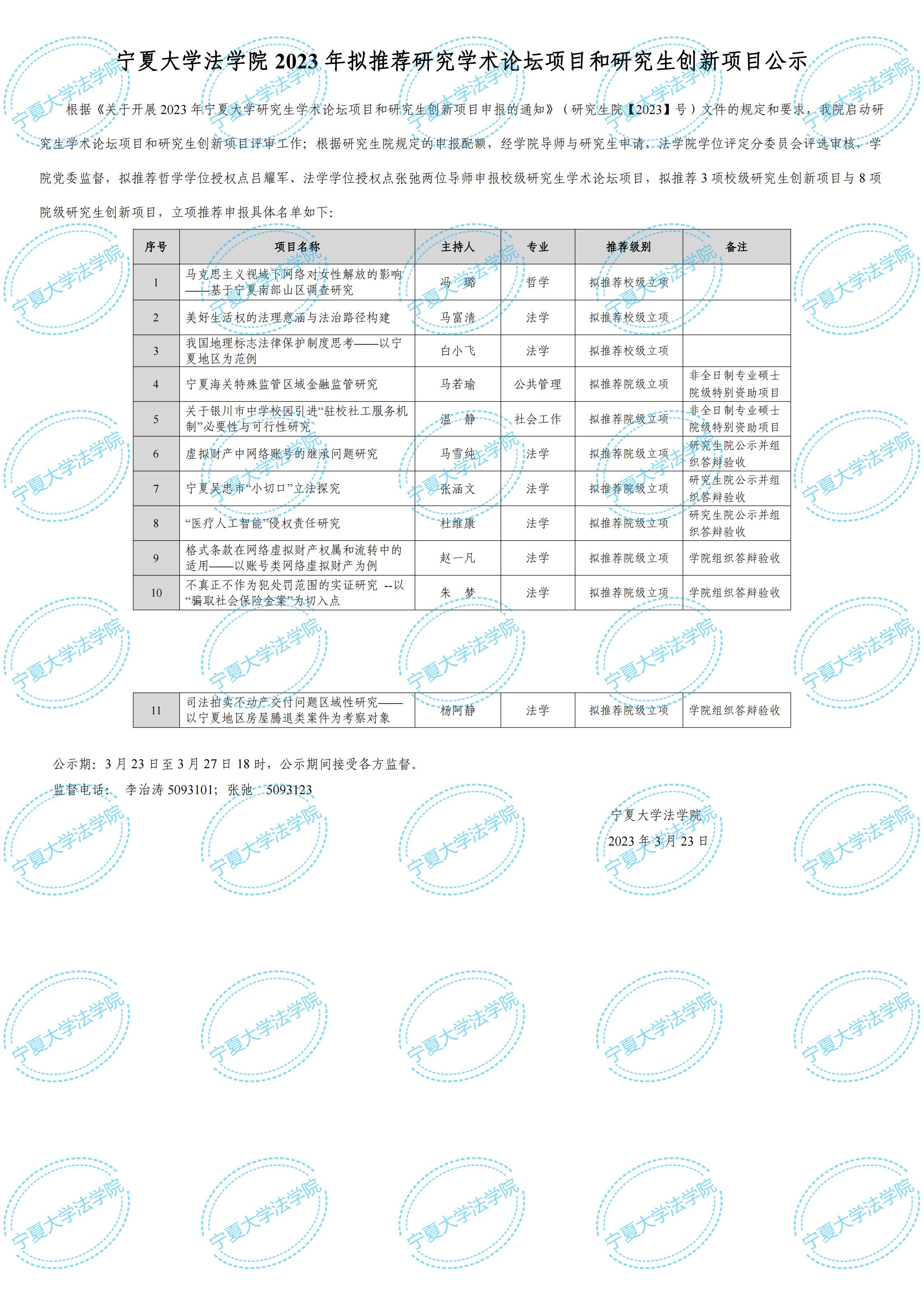 黄瓜视频 2023年拟推荐研究学术论坛项目和研究生创新项目公示