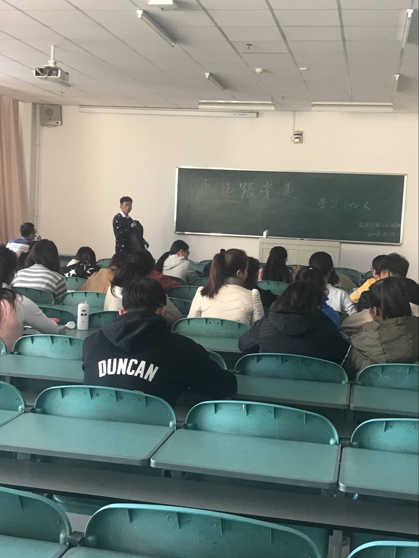 以团支部为单位在贺兰山校区文荟楼各教室举办了“永远跟党走”学习党的十九大精神主题团日活动。本次活动旨在通过学习党的十九大精神,提高同学们对党的信任感、归属感,凝聚青年共识、汇聚青年力量。