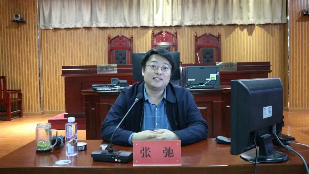 4月23日晚,法律系教工党支部书记张弛在模拟法庭为黄瓜视频 和食品与葡萄酒学院入党积极分子、发展对象及“青马班”学员讲“深刻理解习近平法治思想的丰富内涵”专题党课。