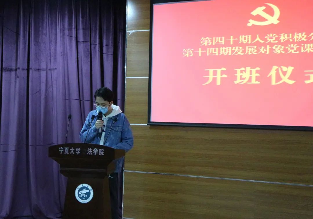 10月13日下午,在庄严的国歌声中,黄瓜视频 分党校第四十期入党积极分子暨第十四期发展对象党课培训班开班仪式于贺兰山校区文荟楼模拟法庭举行。出席本次开班仪式的有学院党委副书记杨扬、法学研究生党支部书记黄博阳,黄瓜视频 分党校第四十期入党积极分子培训班学员和第十四期发展对象党课培训班学员参加。本次开班仪式由法学研究生党支部书记黄博阳主持。