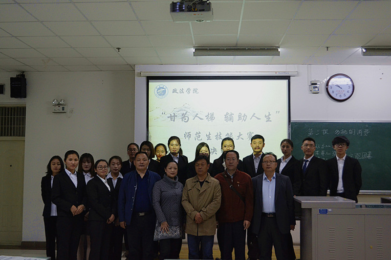 第八届教风、学风建设月系列活动之“甘为人梯,辅助人生”师范生技能大赛决赛在贺兰山校区文科楼340教室成功举办。学院政治系教师贾学峰、潘素洁、马拥军、曹庆锋以及特邀的银川十六中学副校长高存升老师担任评委嘉宾,思想政治教育专业同学到场观摩比赛。