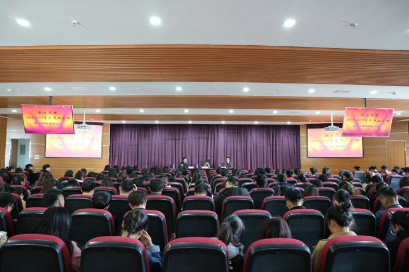 在文荟楼二楼模拟法庭召开2017-2018学年第二学期第一次学生干部大会。学院党委书记潘瑞、副书记崔明堂、学办主任苏军峰出席会议,全体学生干部到场参会。