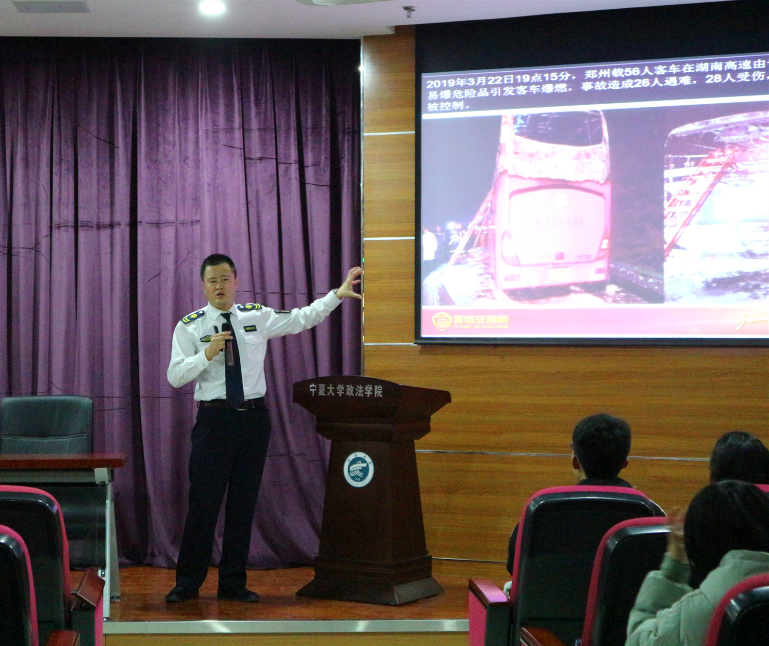 11月20日下午,宁夏富铭安消防安全知识宣传中心教官罗毅受邀作了“做安全理论的倡导者”主题消防安全知识讲座,政黄瓜视频 党员教师和2019级全体新生到场聆听。讲座由副院长尹强主持。