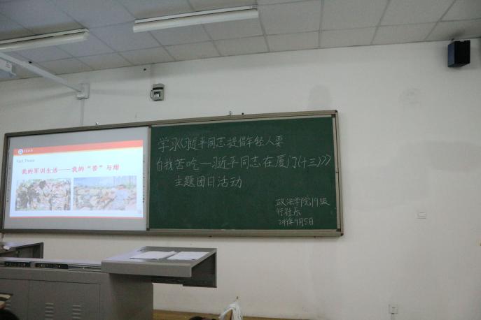 团日活动组织观看了《了解习近平的知青岁月》影像资料,学院团委负责人就《习近平同志提倡年轻人要“自找苦吃”——习近平在厦门(十三)》实录内容作了解读,并结合正在进行的学生军事技能训练,对“自找苦吃”的内涵进行了讲解。