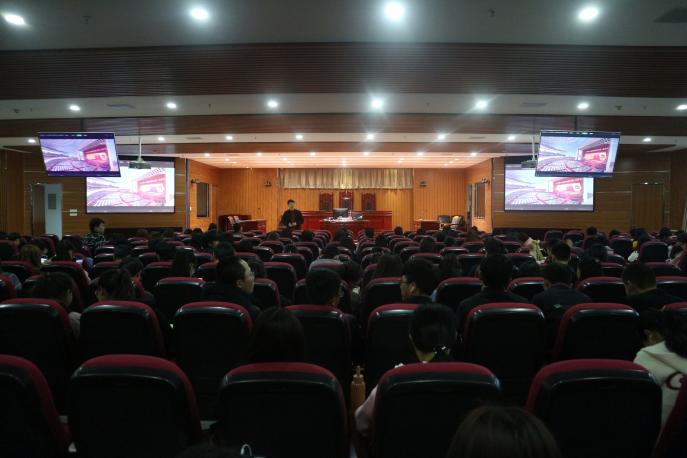 组织2018级全体学生在模拟法庭观看两会开幕式并展开讨论。