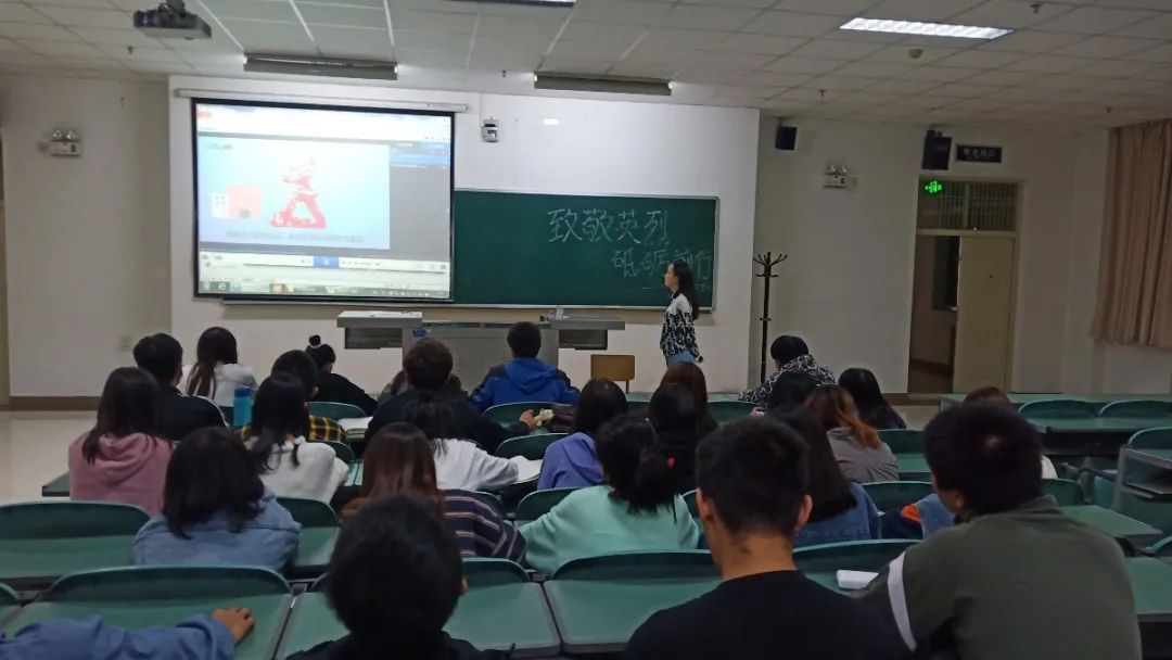 在各班团支书的带领之下,同学们重温了革命先烈的光荣事迹与峥嵘岁月,学习了先烈们的崇高精神。通过重温革命历史,同学们深刻认识到了自己所肩负的历史责任。各班同学还就此次主题班会踊跃发言,纷纷就“致敬英烈,继续前行”阐述了自己的感想。深刻认识到了没有革命先烈的牺牲奉献就没有中华民族的独立与自强,就没有新中国的诞生和我们今天的美好生活。