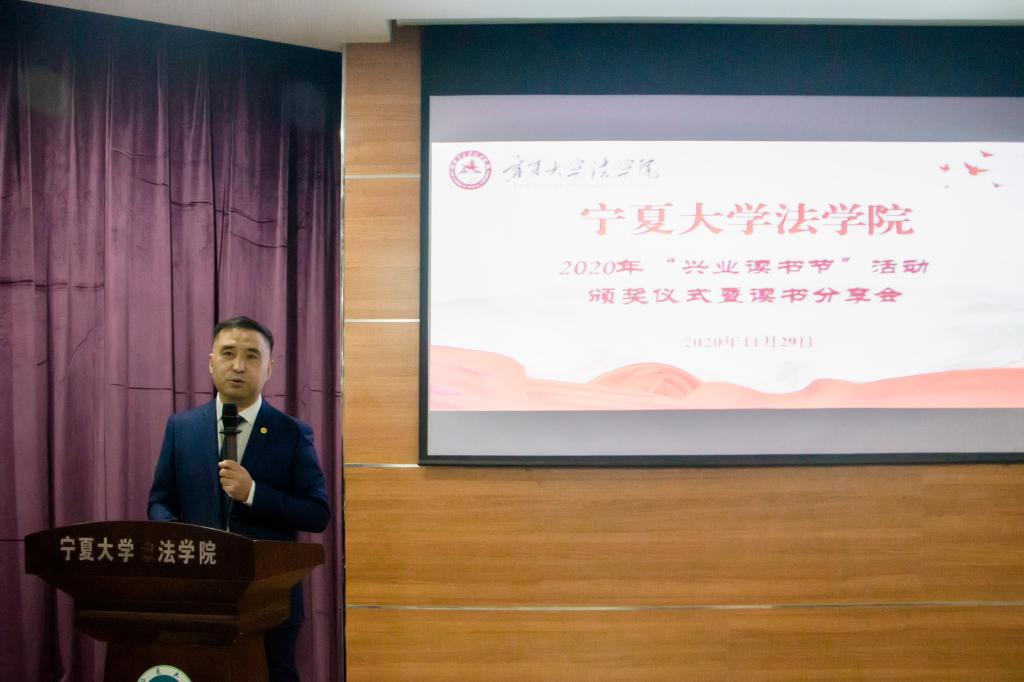 于11月29日晚在文荟楼模拟法庭举办2020年“兴业读书节”活动颁奖仪式暨读书分享会。学院党委书记潘瑞、副书记杨扬,宁夏兴业律师事务所合伙人郝运清、杨玉君、马力国,黄瓜视频