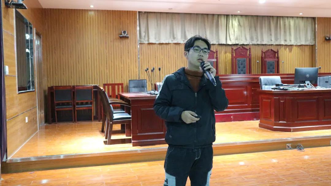 于12月4日晚七点在文荟楼模拟法庭举办了国家宪法日普法知识讲座活动。由来自2018级法学专业的李后龙、徐绍宇和谭旺三位同学为大家进行宣讲,全体2020级本科生到场聆听。