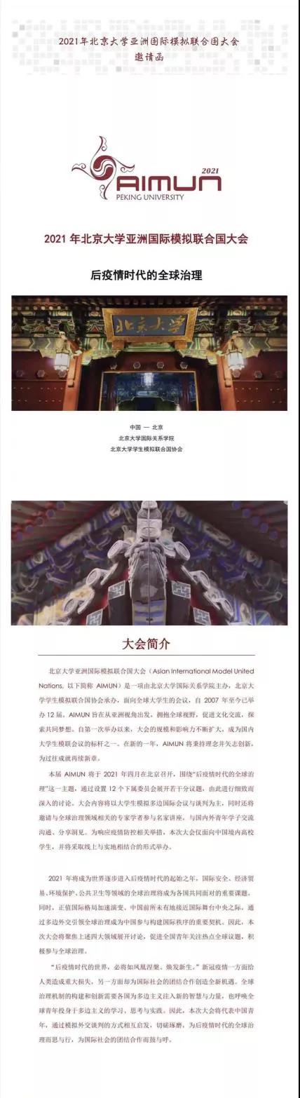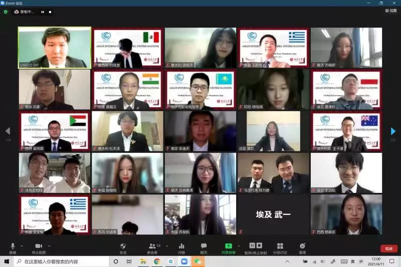 国际关系学会代表团,于线上参加了由北京大学国际关系学院主办的2021年北京大学亚洲国际模拟联合国大会。本届大会围绕“后疫情时代的全球治理”这一主题,旨在从亚洲视角出发,拥抱全球视野,促进文化交流,探索共同梦想。