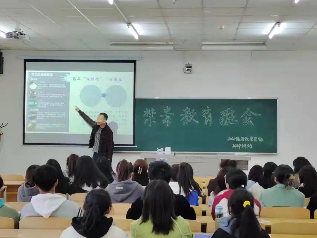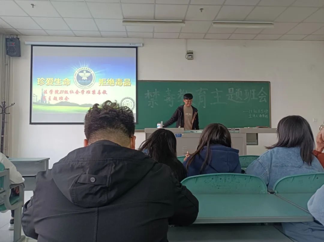 2021级、2020级和2019级各班开展主题为“禁毒知识宣传”的班会活动,班会由各班班长主持,学院辅导员付晓晨深入学生自习室为部分班级进行禁毒知识宣讲。