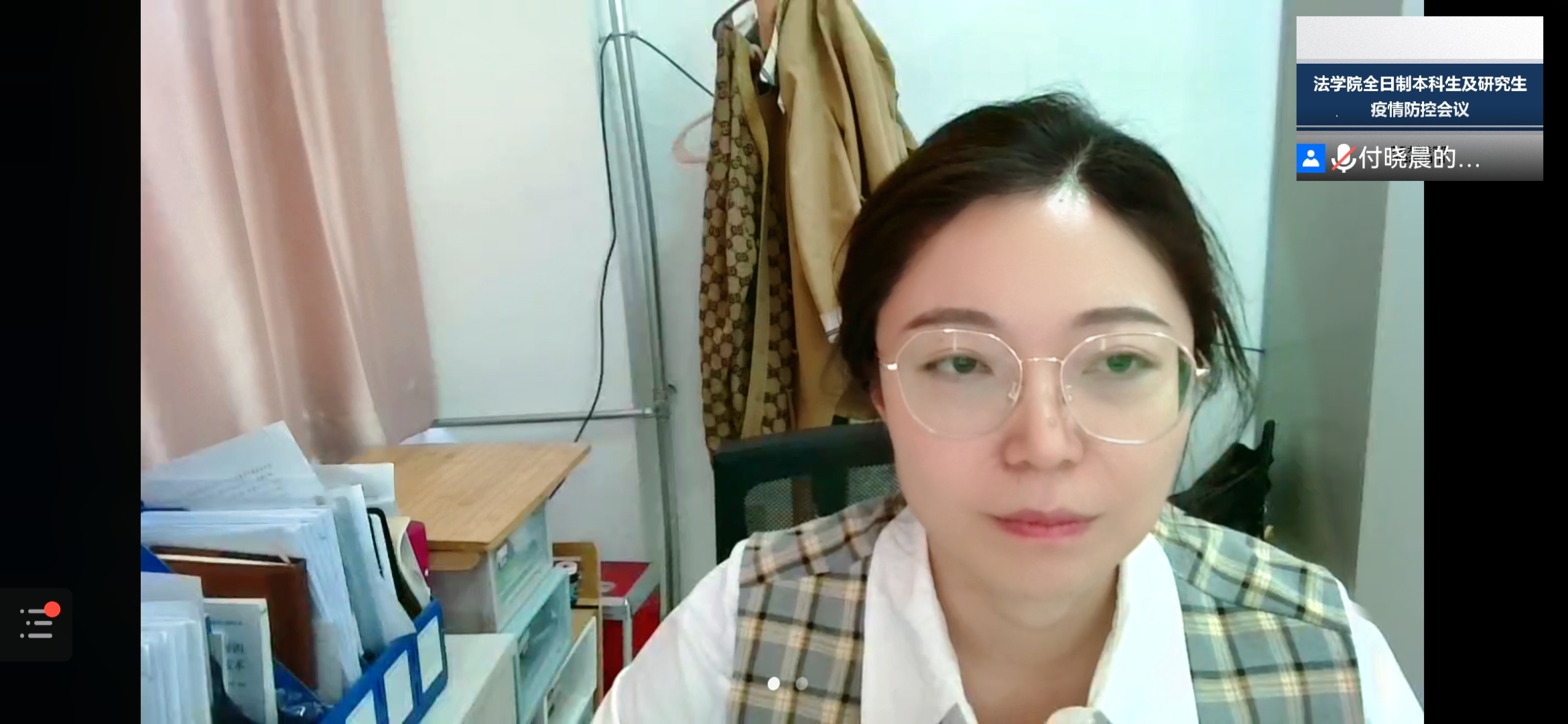 学子疫情防控意识。4月7日下午,学院于线上召开全日制本科生及研究生疫情防控会议,会议由学院学生工作办公室主任王嘉豫、辅导员付晓晨主讲,全体全日制本科生及研究生参加。