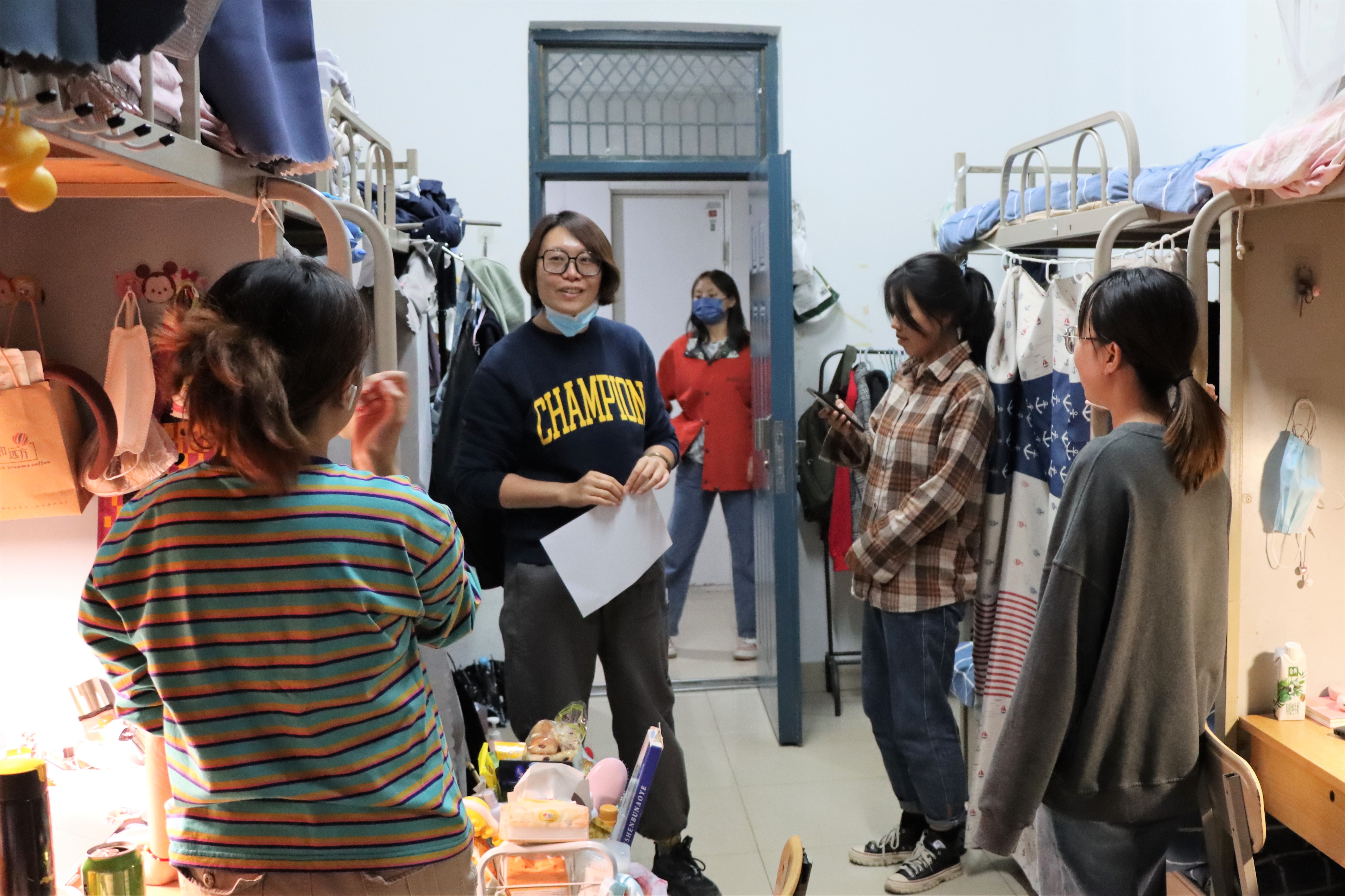为进一步提升同学们的疫情防控意识、安全意识,排查宿舍安全隐患,及时了解同学们的学习生活情况,9月25日晚,学院党委副书记杨扬、辅导员付晓晨深入学生宿舍进行走访。