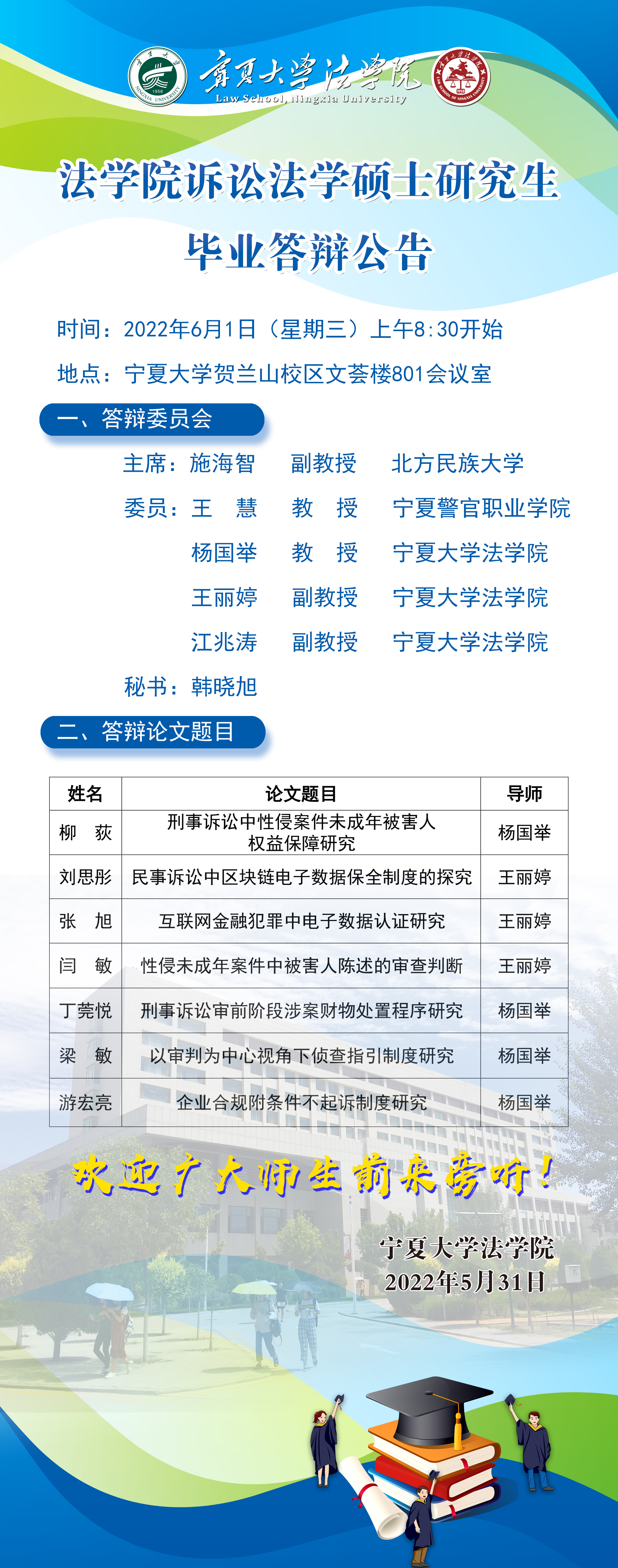 黄瓜视频 诉讼法学硕士研究生毕业答辩公告