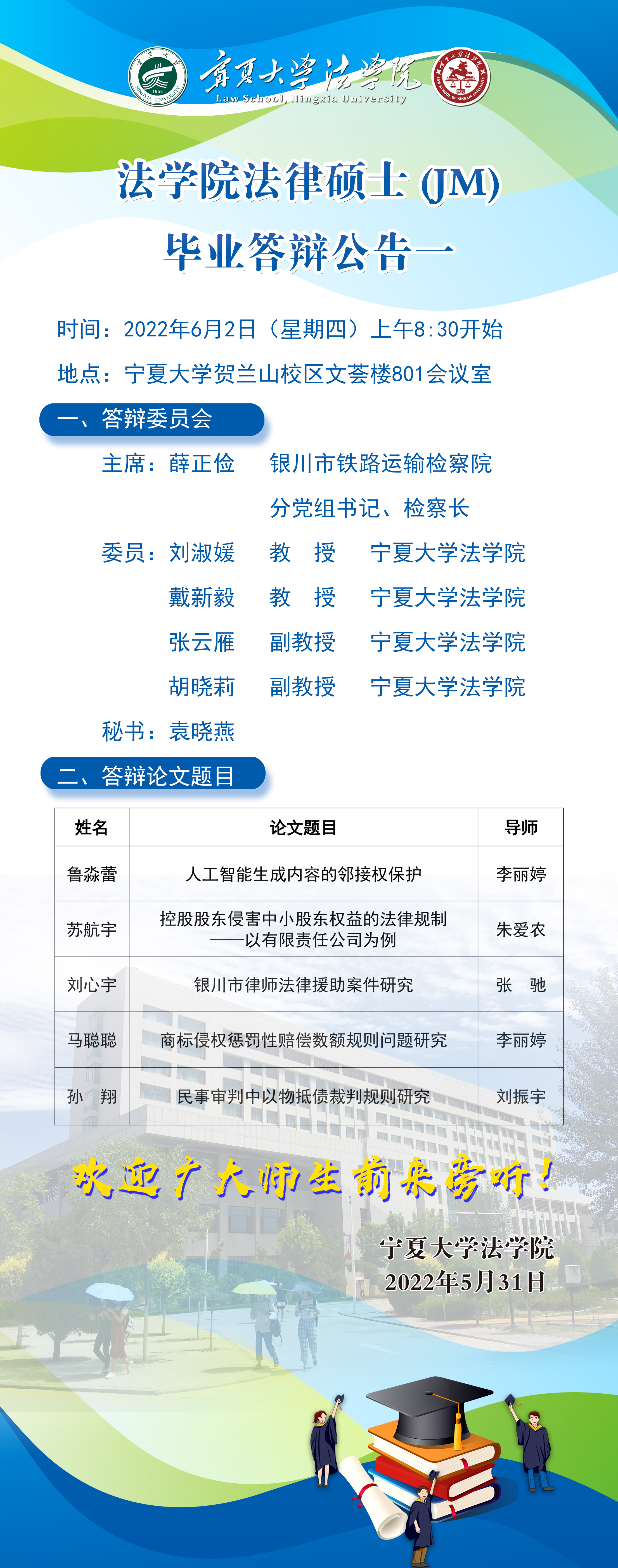 黄瓜视频 法律硕士(JM)毕业答辩公告一