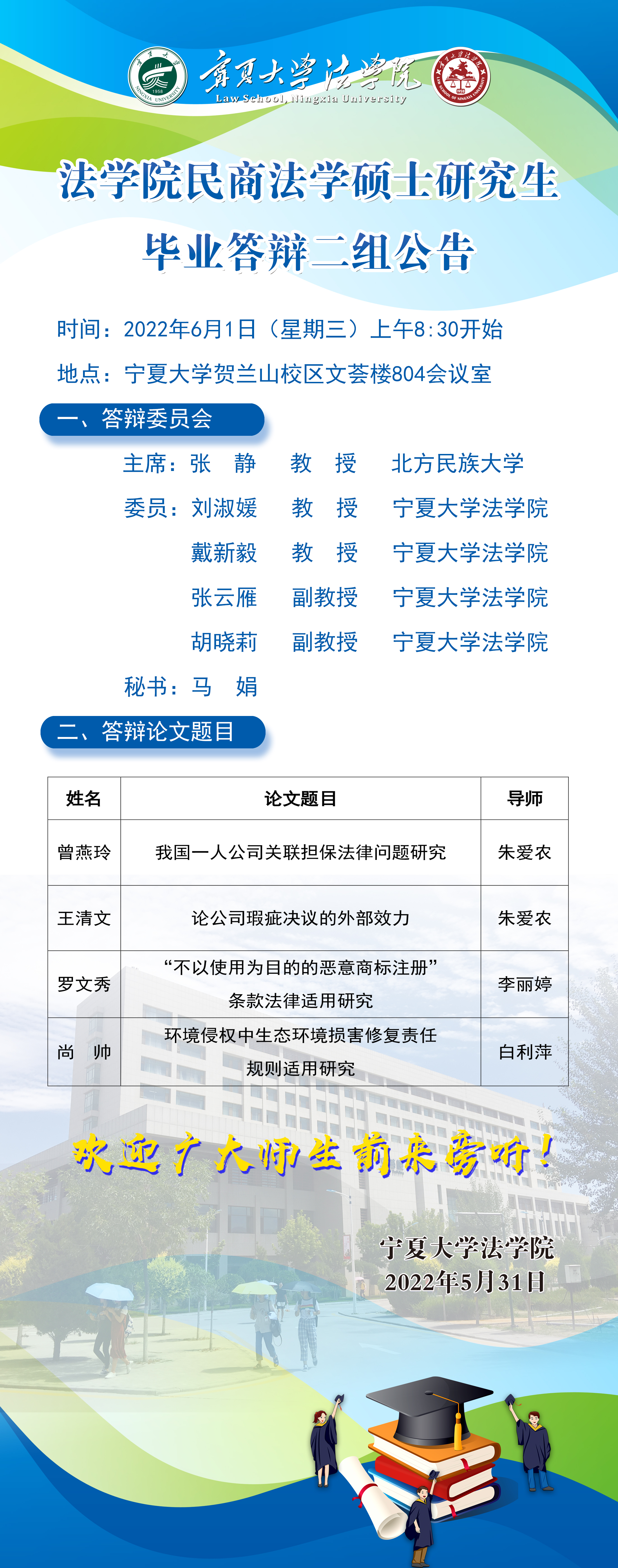 黄瓜视频 民商法学硕士研究生毕业答辩二组公告