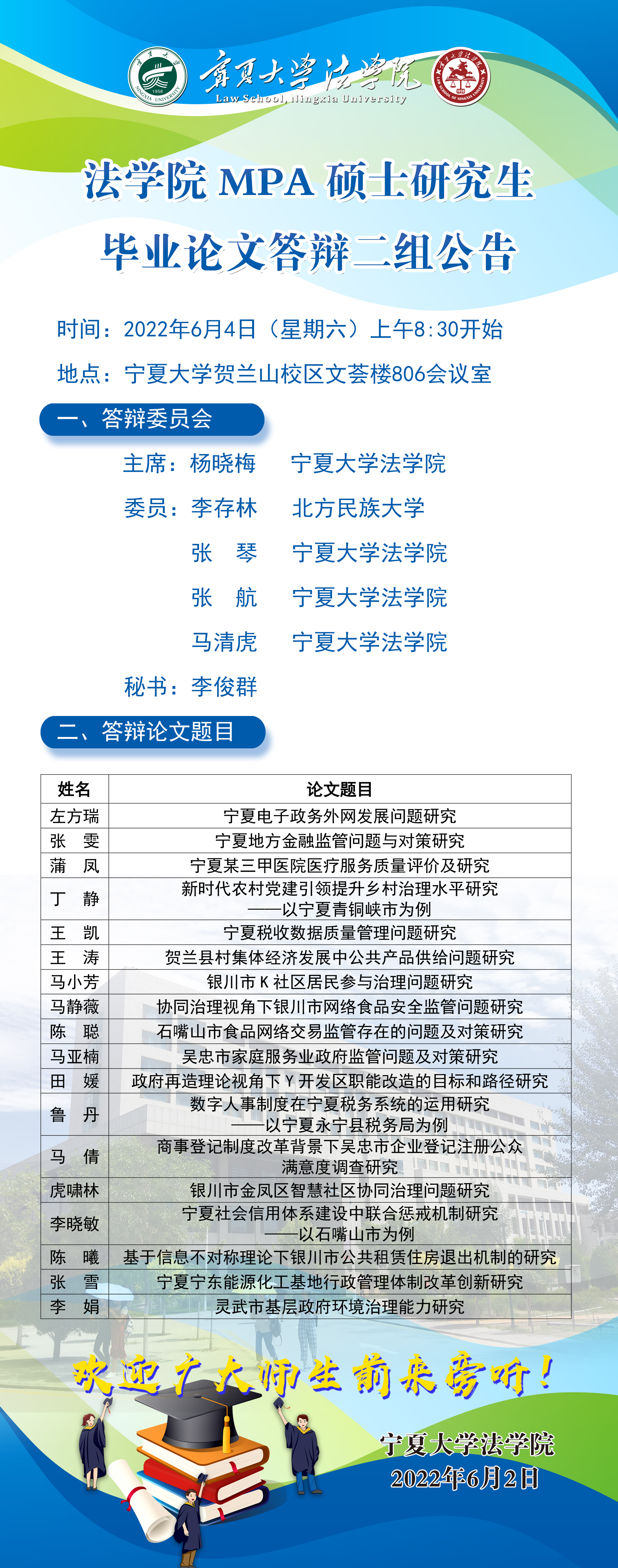 黄瓜视频 公共管理(MPA)硕士研究生毕业论文答辩二组公告