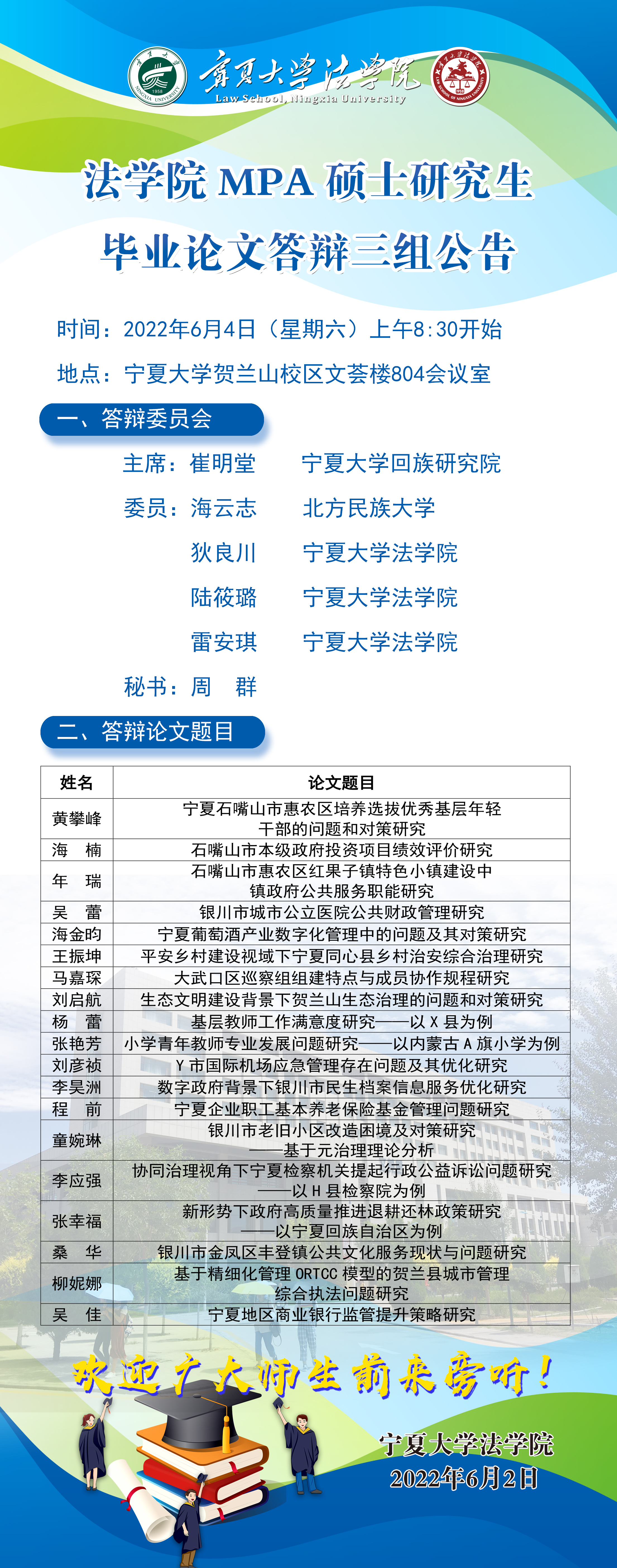 黄瓜视频 公共管理(MPA)硕士研究生毕业论文答辩三组公告