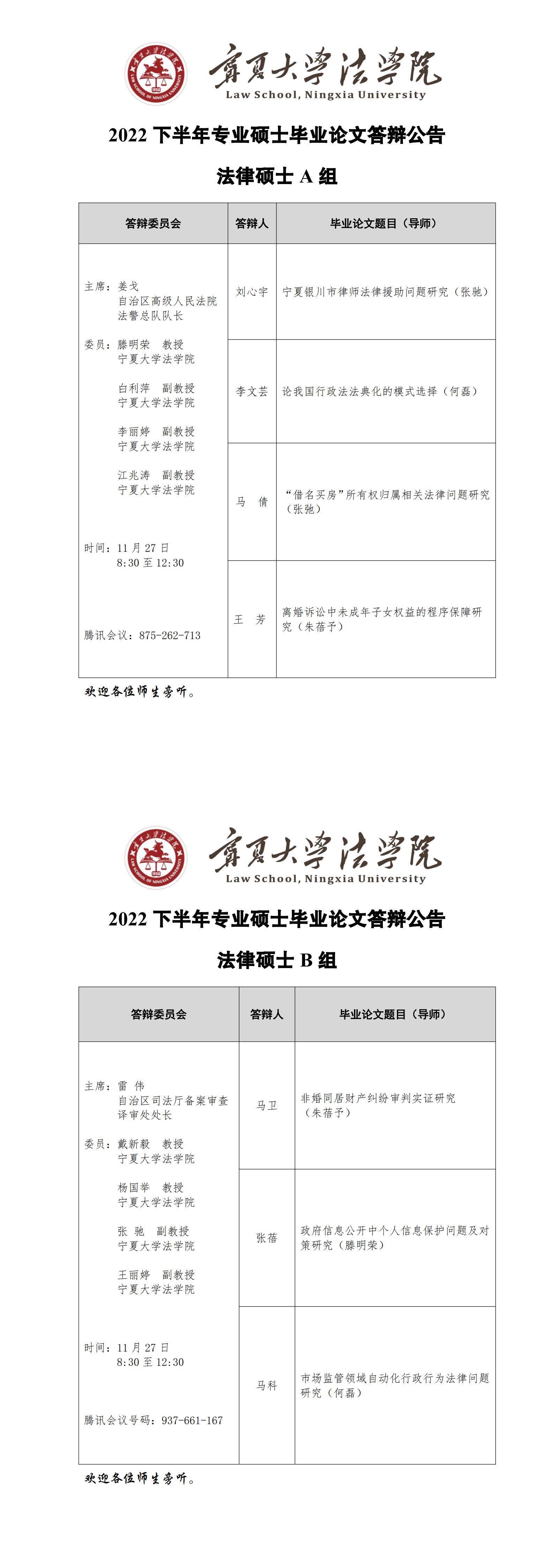 黄瓜视频 法律硕士(JM)毕业论文答辩公告