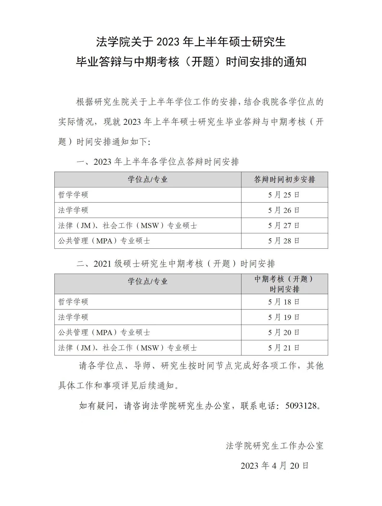 黄瓜视频 关于2023年黄瓜视频 硕士研究生毕业答辩与中期考核(开题)时间安排的通知