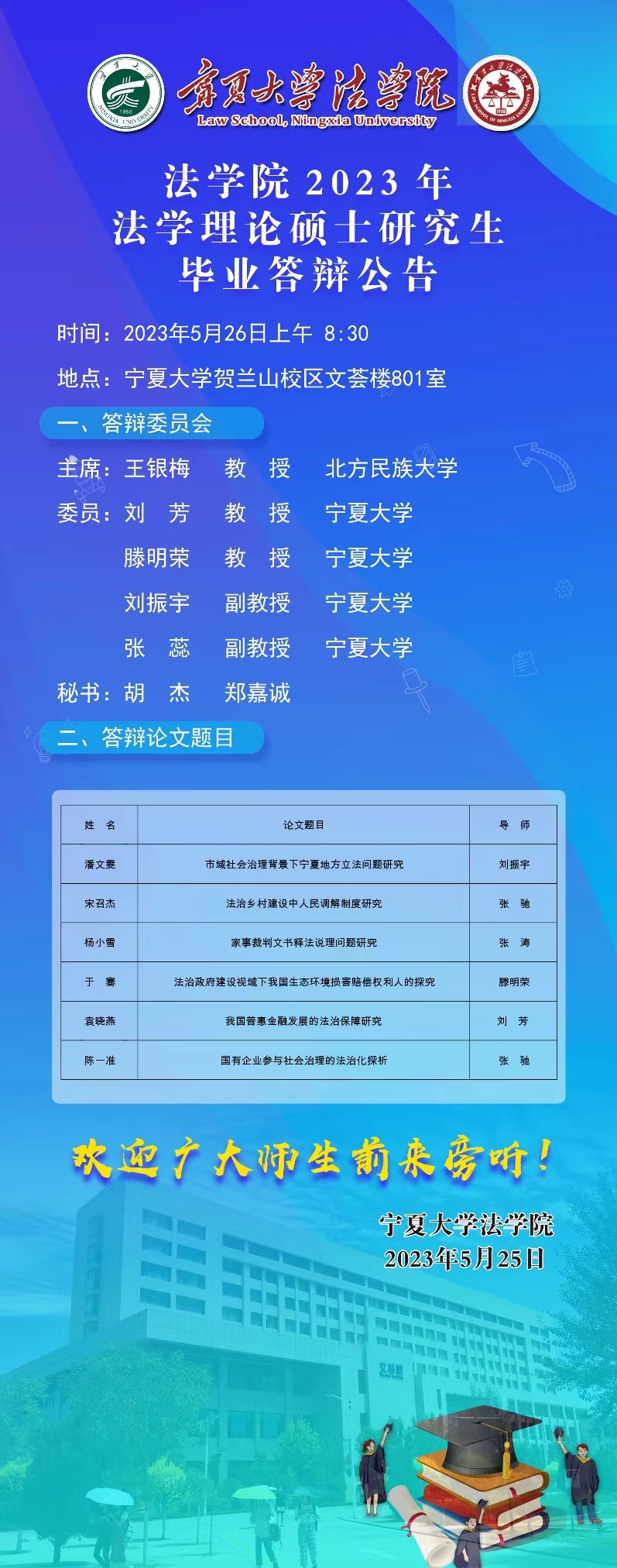 黄瓜视频 2023年法学理论硕士研究生毕业答辩公告
