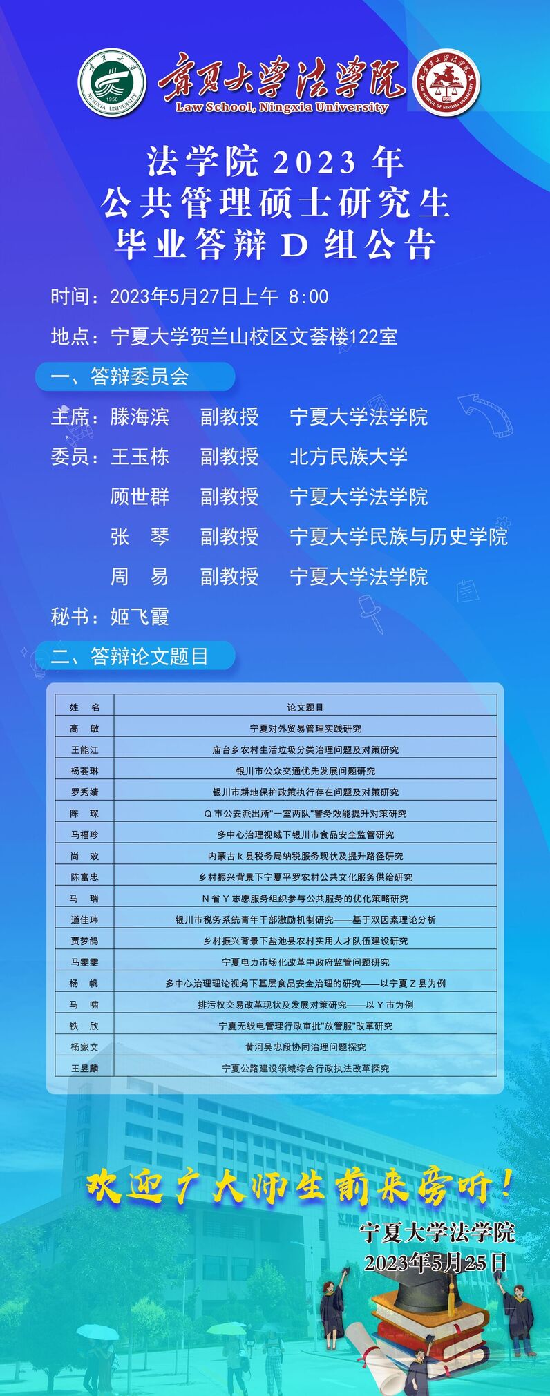 黄瓜视频 2023年公共管理硕士研究生毕业答辩D组公告