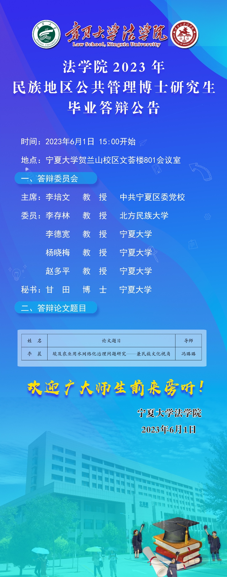 黄瓜视频 2023年民族地区公告管理博士研究生答辩公告