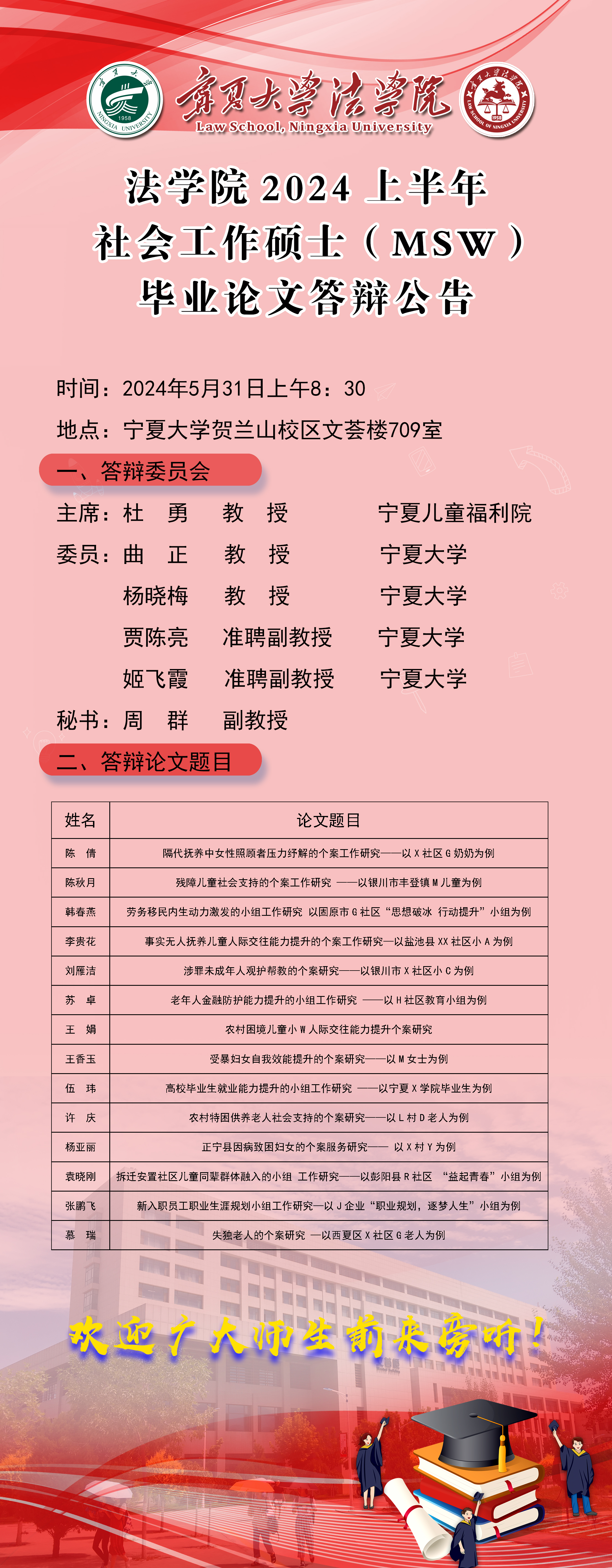 黄瓜视频 2024黄瓜视频 社会工作硕士(MSW)毕业论文答辩公告