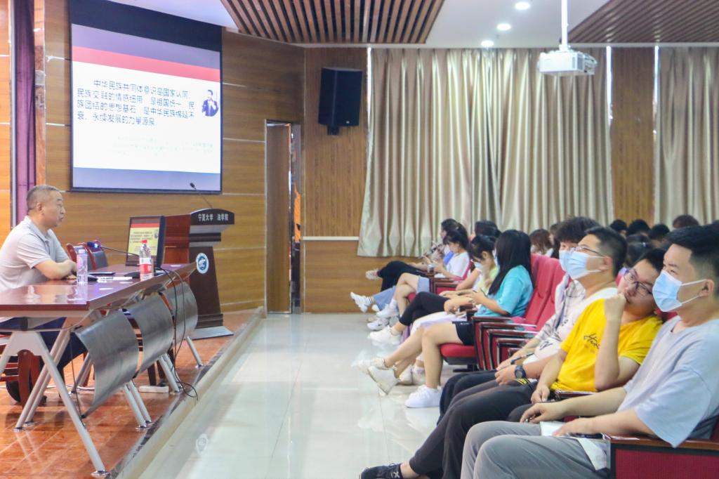 讲座中,吕耀军紧扣主题,围绕铸牢中华民族共同体意识的深刻内涵、铸牢中华民族共同体意识的核心要义、以及铸牢中华民族共同体意识在宁夏的实践三个方面,为在座同学详细讲解了新时代铸牢中华民族共同体意识的重要意义。同时,紧密结合党的百年光辉历程和宁夏社会发展历史,明确了各族干部群众牢记宁夏民族团结的光辉历程、优良传统,汇聚起了感党恩、听党话、跟党走,共同建设美丽新宁夏的强大合力。吕耀军以通俗易懂的语言、深入浅出的讲解为到场学生上了一堂生动而精彩的民族团结教育课。