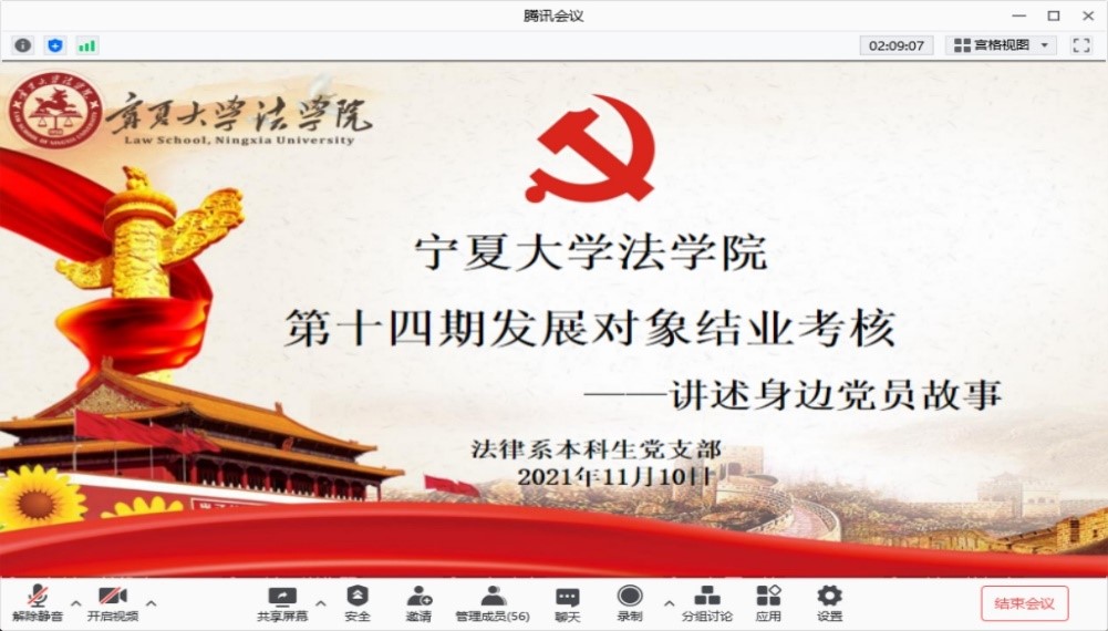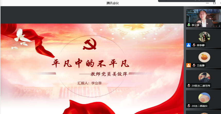 为加强业余党校学员党性修养,持续推进党史学习教育,按照学院党委要求,11月10日晚,法律系本科生党支部组织召开了发展对象考核汇报会“讲述身边党员的故事”。支部书记王嘉豫、支部全体党员、支部第十四期发展对象参加此次会议。会议由许桂容主持。