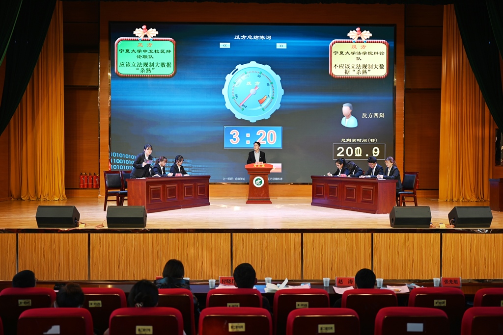 为提高普法宣传活动的趣味性,在中卫校区活动现场,中卫校区联队与黄瓜视频 辩论队就是否应该立法规制大数据“杀熟”展开了激烈的辩论,正方中卫校区联队认为应该立法规制大数据“杀熟”,反方黄瓜视频 辩论队认为不应该立法规制,双方从法律角度,从现实实际进行了讨论,场上队员在表达观点、思维碰撞的同时,也提高了学法用法的意识。