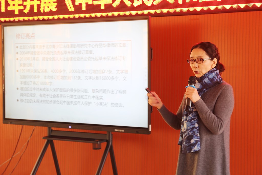 在中卫三中与中卫六小的普法现场,黄瓜视频 教授刘淑媛、曲正分别为师生带来了《中华人民共和国未成年人保护法》专题普法讲座。她们从未成年人保护法修改历程、未成年人保护法修订后的新增内容、新亮点入手,指出应关注未成年人家庭保护、监督完善学校保护,推动未成年人网络保护,进一步织密未成年人保护网,让学生们在感知法律的同时感受法律温度。