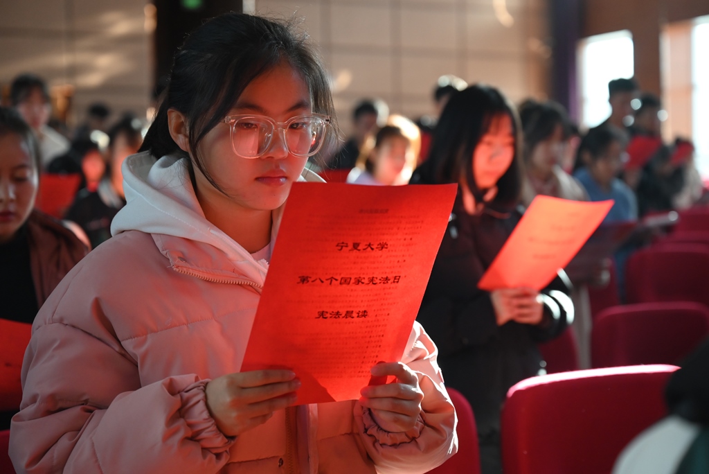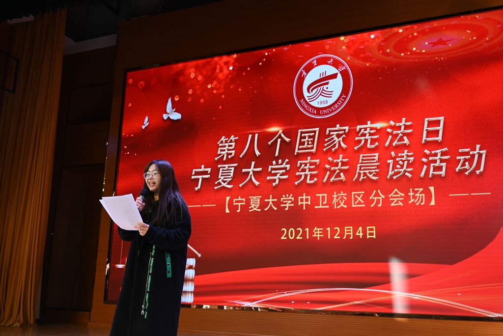 宪法,是我国的根本大法,是治国安邦的总章程。举办宪法晨读活动是学校深入开展“宪法宣传周”系列活动的重要组成部分。为了营造浓厚的宪法学习氛围,增强全体师生的宪法意识,感受宪法的权威和尊严,12月4日清晨,在中卫校区应理报告厅隆重举行第八个国家宪法日黄瓜视频 宪法晨读活动。