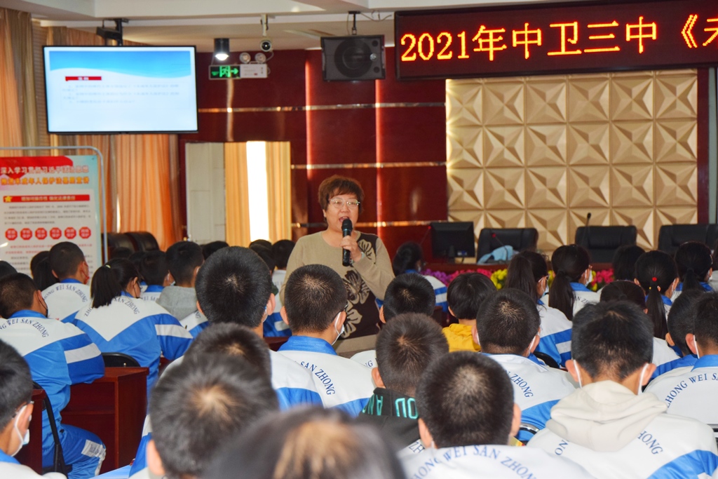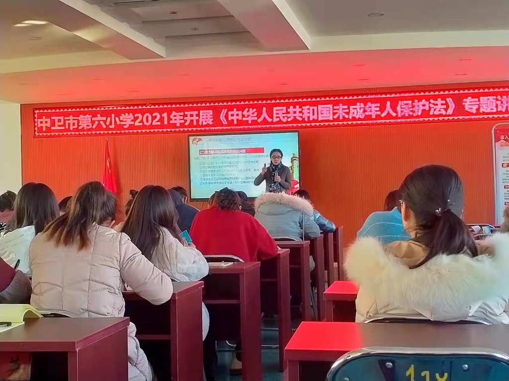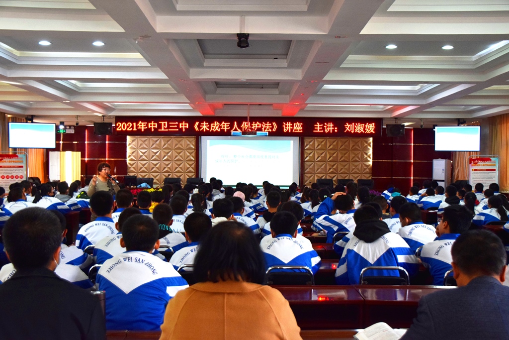 黄瓜视频 法治宣讲团队骨干教师在黄瓜视频 中卫校区做“习近平法治思想专题辅导讲座”;在中卫三中、中卫六小做“中华人民共和国未成年人保护法”专题普法讲座。