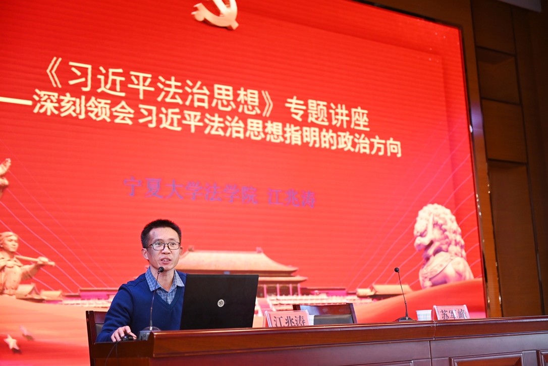 在宪法宣传日,以大学生为对象,宣讲习近平法治思想;以中小学师生为对象,普及《中华人民共和国未成年人保护法》,大力营造全社会关爱保护未成年人健康成长的浓厚氛围,协助中卫市进一步增强社会主义法治文化建设和法治校园建设,让法治宣传教育在基层强起来、实起来、暖起来。